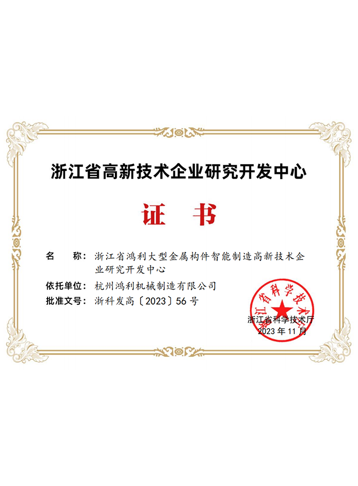 浙江省高新技術企業研究開發中心 證書