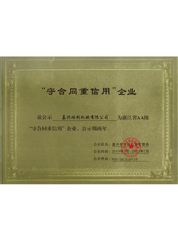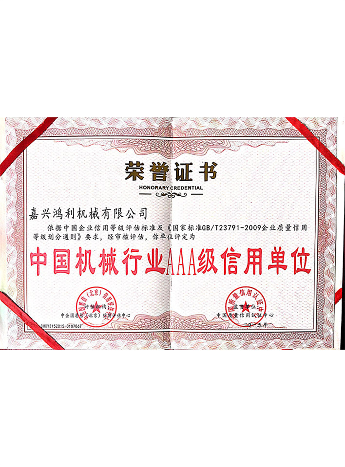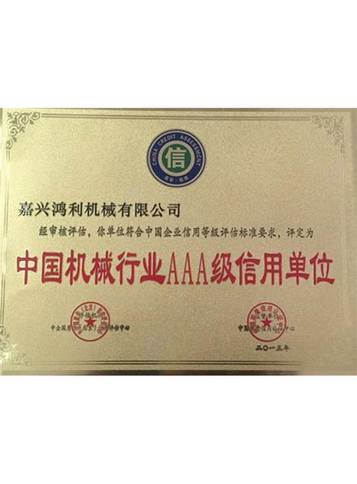 機械行業AAA級信用單位證書