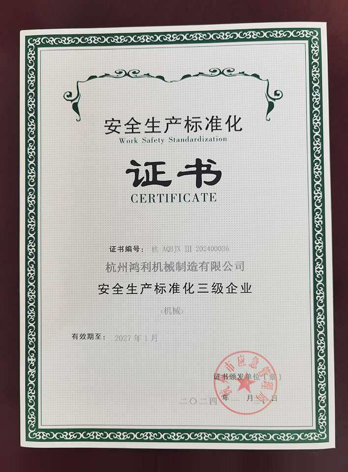 安全生產標準化證書