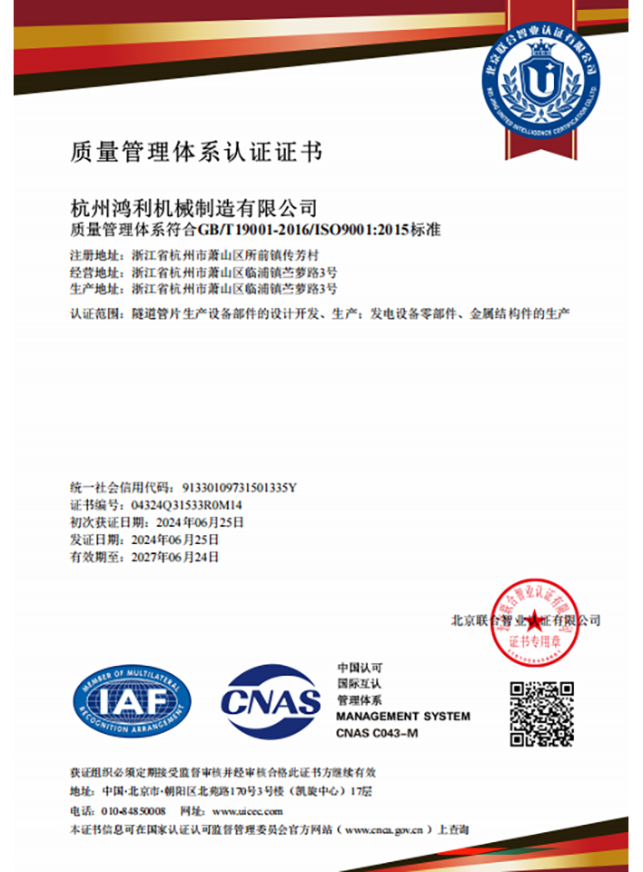 質量管理體系認證證書