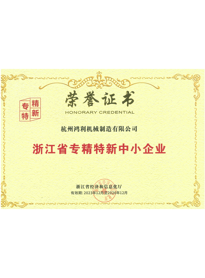 浙江省專精特新中小企業證書