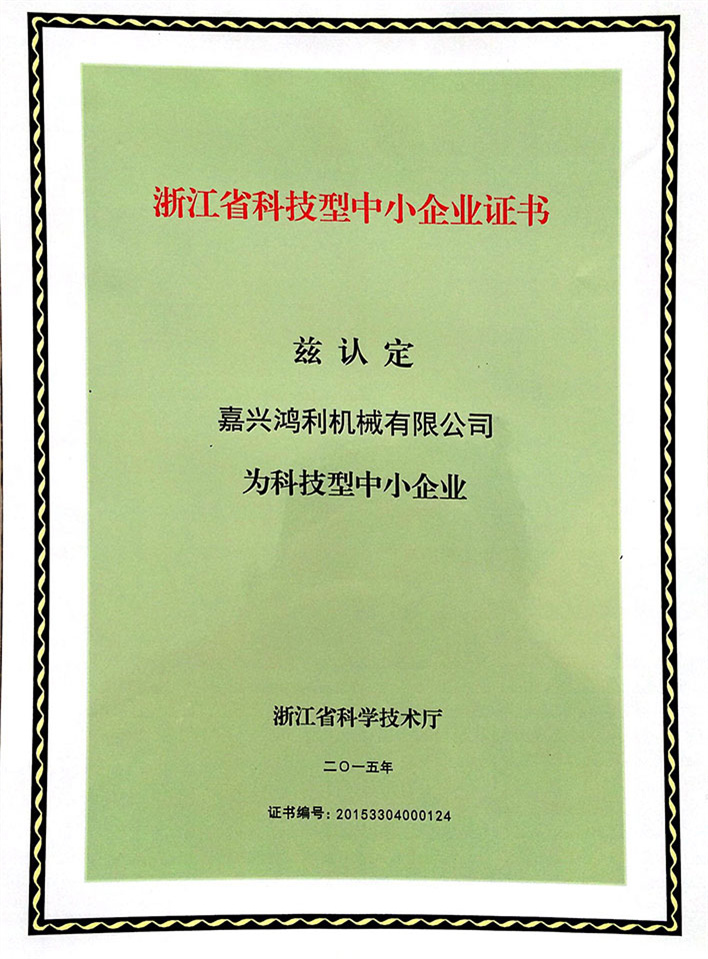 浙江省科技型中小企業證書