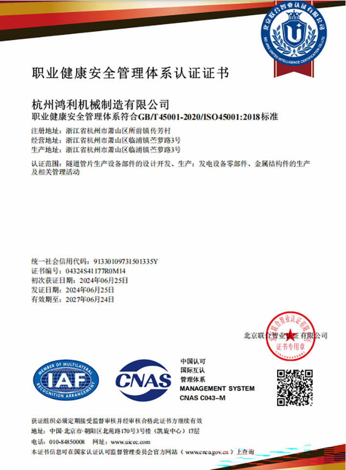 職業健康安全管理體系認證證書